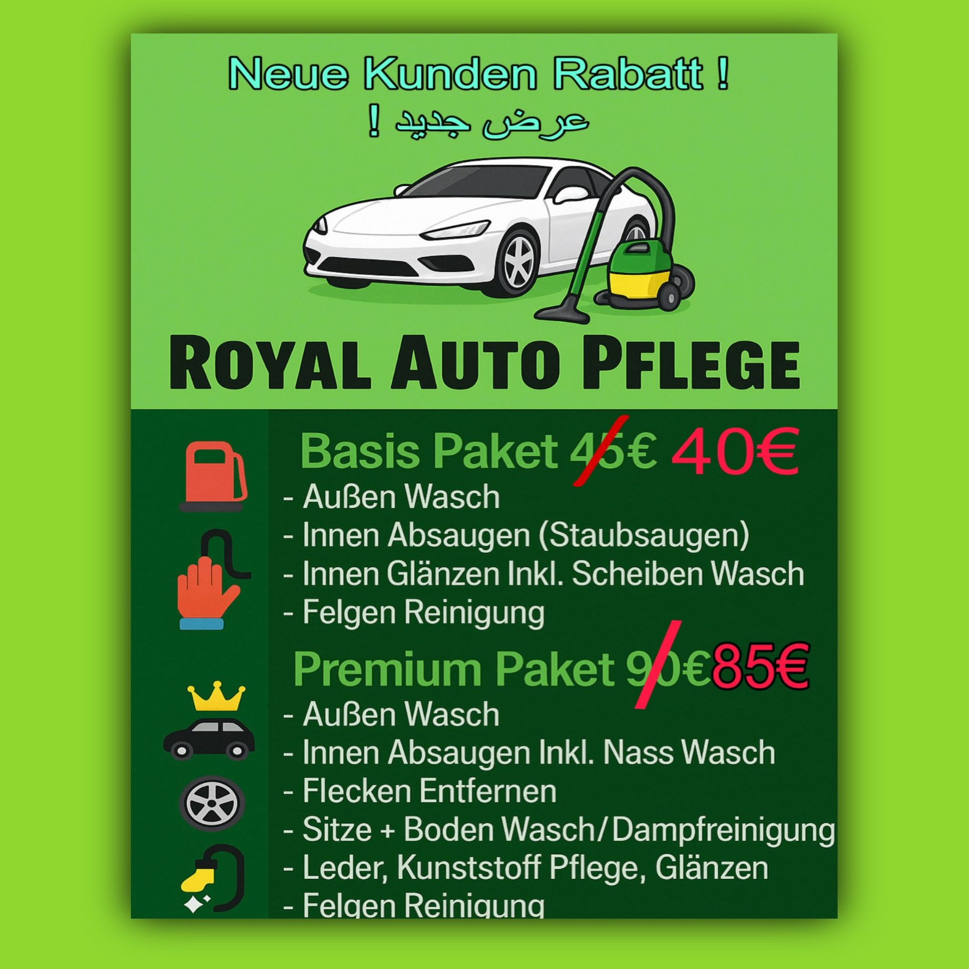 Royal Auto Aufbereitung steht für professionelle Fahrzeugpflege auf höchstem Niveau. Wir bieten gründliche Innen- und Außenreinigung für Werterhalt und ein königliches Fahrgefühl.